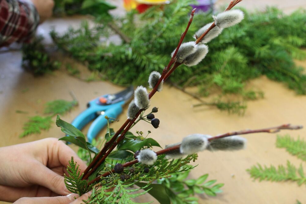 Alle sind herzlich eingeladen, beim Palmbinden mitzumachen.