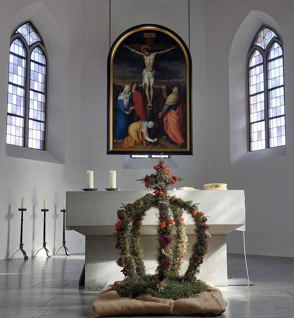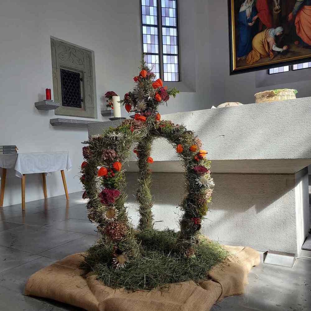 Am Sonntag, 24.09.2023, feierte unsere Pfarrgemeinde in einer von den Bäuerinnen prachtvoll geschmückten Kirche Erntedank.